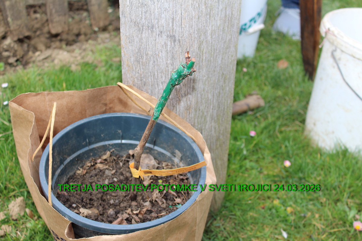 24. marca 2026, smo v Sveti Trojici posadili že tretji cepič potomke najstarejše žlahtne vinske trte na svetu 🍇